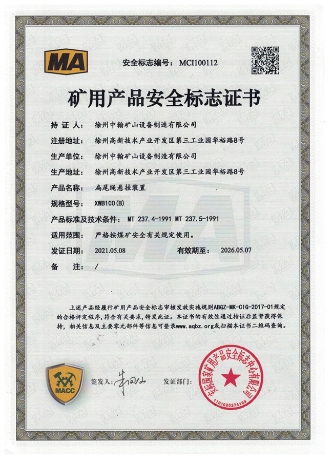 XS110楔形繩環煤安證書