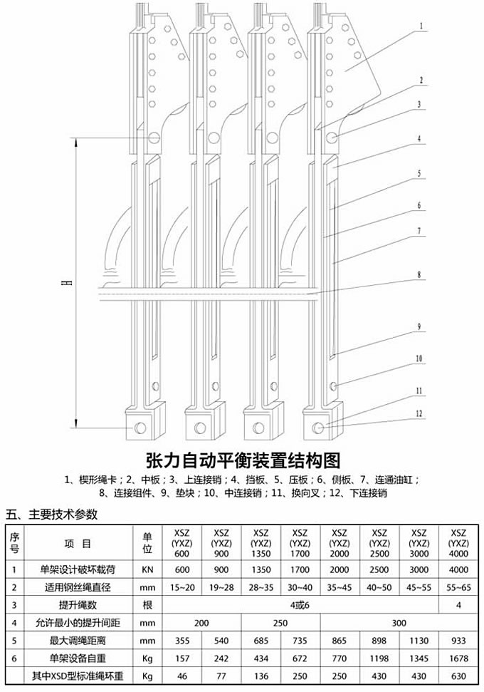 多繩提升張力自動平衡懸掛裝置采用由液壓油缸、連通管路、截止閥等組成的閉環(huán)連通系統(tǒng),是提升鋼絲繩在動靜狀態(tài)下實現(xiàn)多繩張力自動平衡,從而減少了因滾筒直徑誤差、鋼絲繩剛度誤差而引起的張力失衡,大大提高了提升鋼絲繩的使用壽命,有力的保證了多繩提升系統(tǒng)的安全。本產(chǎn)品可用于新礦井的選型設(shè)計,也可用于老式墊塊式、螺旋式液壓調(diào)繩器的替代使用。
